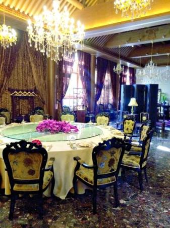 走进乙十六北海店,记者看到,这里鎏金绘彩,斗角瓦檐。庭院两侧设有七个雅间,厅内装饰均以龙凤为主题,饰以大型彩绘宫灯、配以明黄色的台布、餐巾、椅套,餐具采用仿清宫瓷器或银器,处处体现出浓郁的宫廷气派。