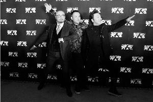 《无人区》的主创们昨日在发布会现场展示搞笑功力,左起:徐峥、宁浩、黄渤。