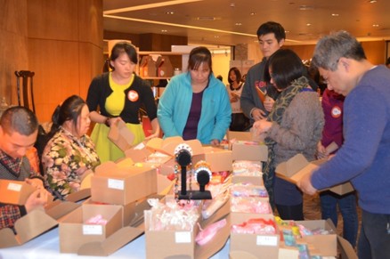 11月30日下午,北京希尔顿酒店举办了2013年圣诞列车点灯仪式暨圣诞慈善集市活动。在热闹的圣诞慈善集市上,九易广告公司员工携手朝阳区玉华残障人士康养服务中心进行了手工精油皂的义卖,本次义卖的手工精油皂均由“玉华服务中心”的残障孩子们亲手制作而成,其制品涉及主题多样,包含了十二生肖、圣诞、婚庆等多个主题,每个主题下又有着丰富的造型。这些残障孩子们虽然相比一般的孩子没有较好的智力天赋和动手条件,但作为社会的一员,仍十分渴望为别人贡献出自己的价值,而在玉华服务中心和社会爱心人士的帮助和引导下,他们的创造力和潜力得到了极大的发挥。这些艺术性和实用性俱佳的精油皂品,无不吸引着现场来宾的争相购买,成为了整场活动的一大亮点.