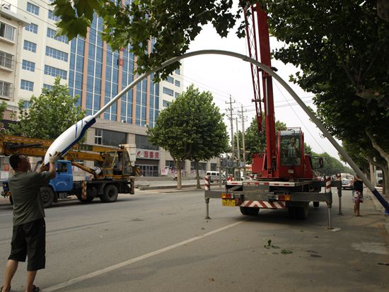 “在杭州路路灯改造工程施工中,为了减少夏天对市民出行的影响,加快工程进度,我们克服了天气炎热、多雨等困难,灵活调整工作时间,最早清晨5点上班,最晚到晚上8点下班,为市民出行提供了更多便利。”亮化处工程科人员这样说。据悉,杭州路(北京路至水岸花园小区段)工程,是2013年市重点工程、民心工程,道路全长600米,该处根据路灯设置要求,在道路西侧共安装了路灯17盏,灯具全部采用了节能高效的无极灯。