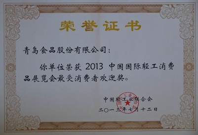 近期,中国轻工业联合会在北京举办了2013中国国际轻工消费品展览会。青岛食品股份有限公司应邀参加展会,在会场设置展台,向中外客商和消费者展示和宣传了“青食”在食品行业的优势以及产品的特点,受到参会客商和众多消费者的好评。特别是青岛食品股份有限公司的“青食”商标2012年被认定为“中国驰名商标”,更得到了许多参会人员的赞许。在这次展览中,青食公司以良好的信誉、高品质的产品、优质的服务,荣获“2013中国国际轻工消费品展览会最受消费者欢迎奖”。