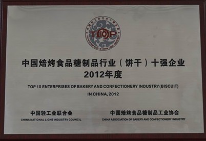 在本次展会期间,中国轻工业联合会还本着严谨、科学、公正的原则,依据2012年度全国各轻工企业规模、发展业绩和对行业的贡献,开展了“中国轻工行业十强企业”评价工作,对中轻联下辖的40个行业进行了行业十强的评选。青岛食品股份有限公司继今年上半年荣获中国焙烤食品糖制品工业协会“突出贡献企业”称号后,又荣获“2012年度中国焙烤食品糖制品行业(饼干)十强企业。”