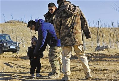 在郊游中,勇先生和孩子玩耍,韩乐和王皓紧跟身边。