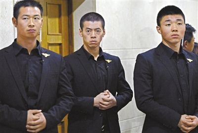 丁琨(中)和另外两名保镖在门口守候,他们的视线要不留死角。