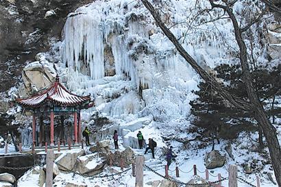一处处梦幻般的冰瀑造型,装点着平度茶山。进入腊月,随着气温降低,位于平度市店子镇的茶山风景区又出现了美丽的冰瀑奇观,引市民纷纷前来观赏这大山深处的神奇美景。