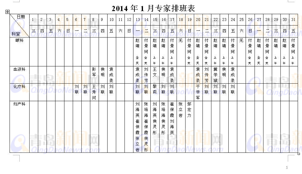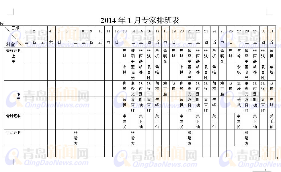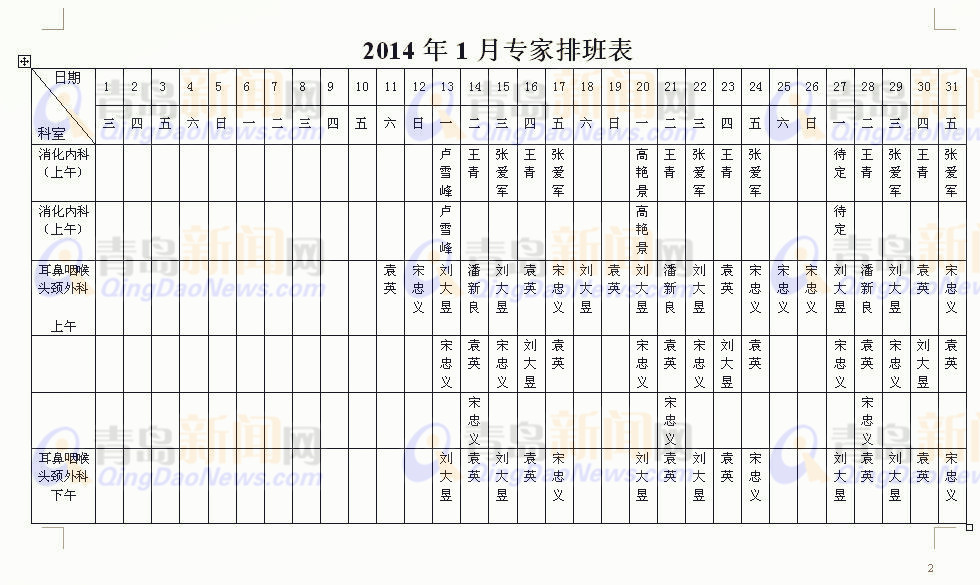 青岛新闻网1月13日讯 13日,记者从山大齐鲁医院青岛院区了解到,备受市民关注的专家坐诊表正式出炉,包括33个科室的百余位专家。专家排班表中绝大多数专家来自为济南中心院区,还有部分常驻专家。1月14日,心内科专家、中国工程院院士张运将全天坐诊,据了解,张运院士每隔两周的周一和周二都会来到青岛院区,为市民提供最优质的医疗服务。此外,青岛院区中医科已正式开诊,由济南专家赵玉霞教授担任学科带头人。