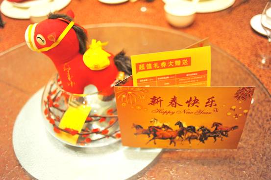 餐桌布置,红色的桌布和桌上的红色小马,能烘托出春节的喜庆氛围——没有过于夸张的装饰,却能在不经意间营造温馨和喜庆,用餐环境还是不错的。
