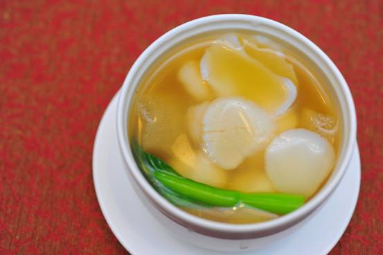 松茸鱼圆海鲜盅里面的鱼丸很特别,和常规的有弹性的鱼丸截然不同,这里的鱼丸是软糯的——软糯没有了弹牙的乐趣,但因为鱼肉间空隙多,能够充分吸收汤里的汁水,所以味道挺好的。