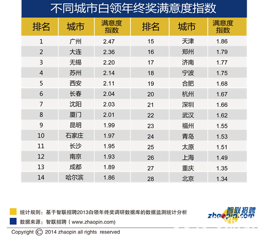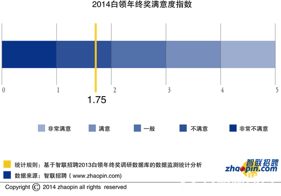 一、2014白领年终奖满意度仅为1.75,超一成白领年终奖不足千元