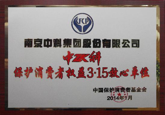 最新消息,在2014年3·15消费者权益日来临之际,中国保护消费者基金会组织开展“保护消费者权益3.15放心(品牌)单位”宣传承诺活动,并授予南京中科集团股份有限公司“保护消费者权益3·15放心单位”殊荣。南京中科集团再次以优质的产品和服务赢得消费者的信赖。