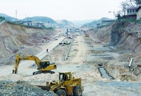 在二环路建设项目第四工区,记者看到,整个四工区25台机械设备全部处于运作状态。四工区负责人告诉记者,目前工区内各项建设正稳步推进,对于5月底全面完工的预期目标,大家都充满了信心。
