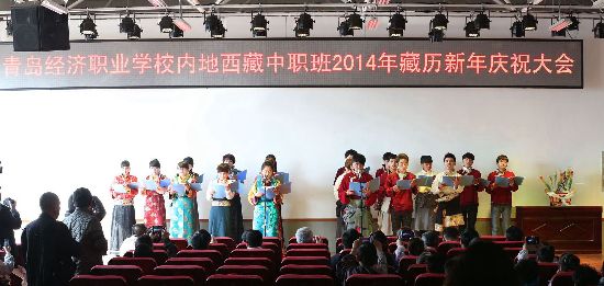 今年藏历和农历同属马年。藏族同学向到场的领导敬献了哈达并新年祈福,市北区统战部、市教育局向藏族同学送上了新年礼物。青岛经济职业学校校长王永峰代表西藏班的全体师生对领导们的到来表示深深的感谢,表示在各级领导的支持与爱护下,一定把西藏学子培养成为美丽西藏的合格建设者。邓云锋局长代表教育局肯定了青岛经济职业学校四年来的成绩,寄语西藏班同学,珍惜学习机会、苦练知识技能,坚定信念、立志成才。