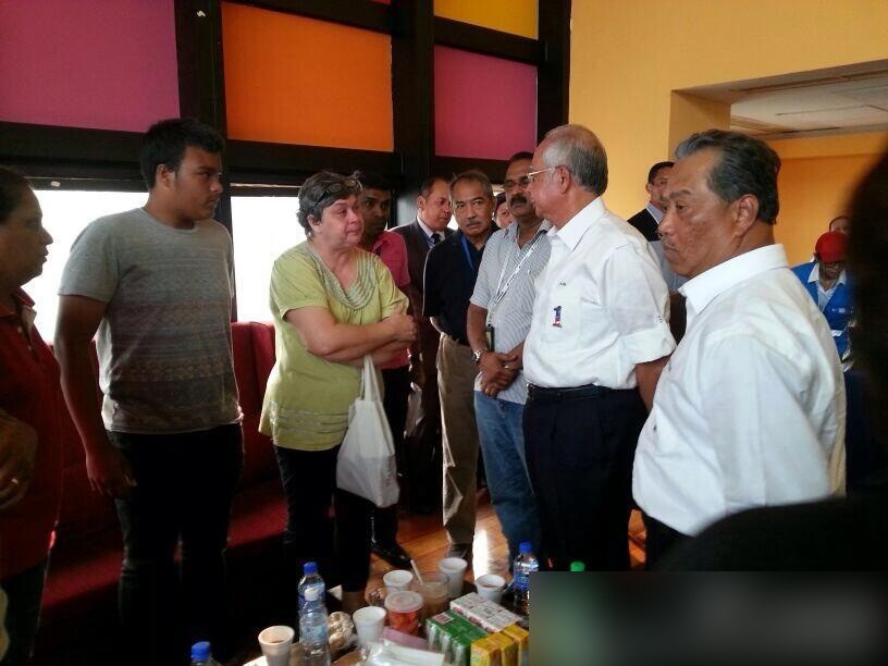 3月8日,马来西亚总理纳吉及副总理慕尤丁抵达机场,向乘客家属给予慰问。