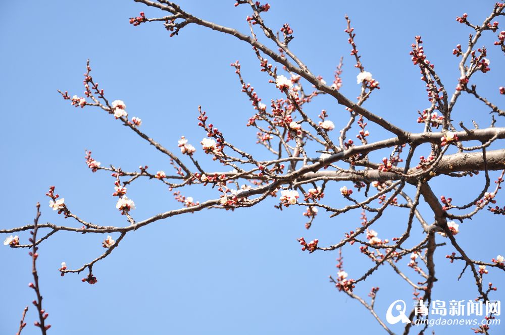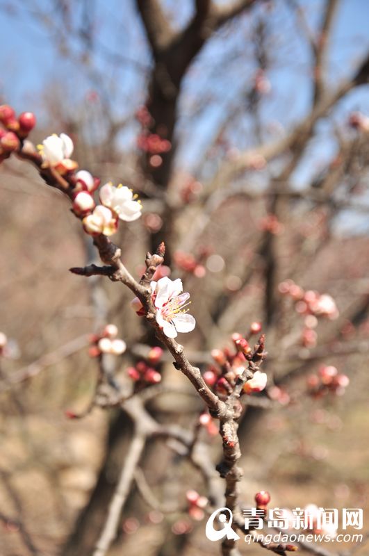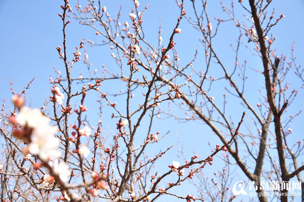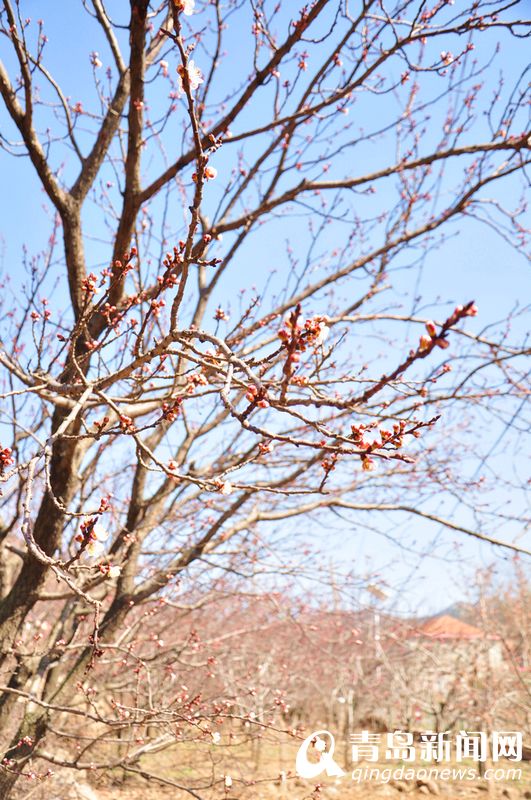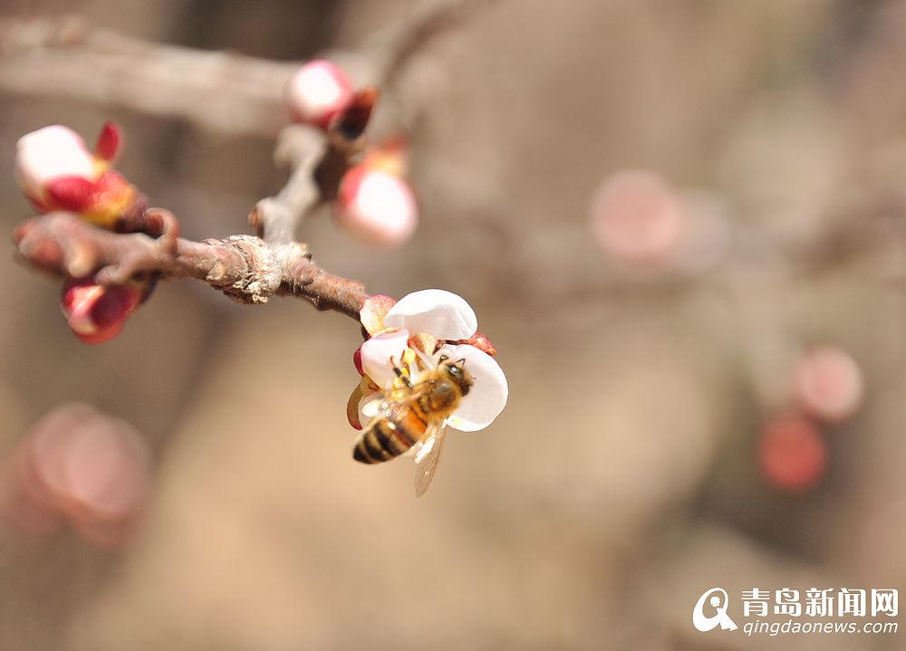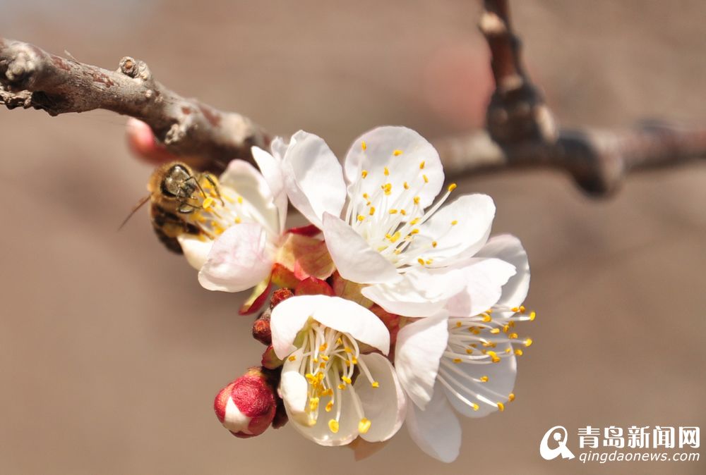 崂山乡村杏花吐蕊 小蜜蜂采蜜忙