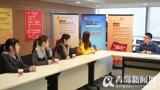 22日上午9:30,百胜餐饮集团在青岛举办的招募会面试正式开始,有应聘青岛本地,也有应聘重庆、开封、济南、烟台等地的大学生面试者。就读于中国海洋大学生物学的张芳芳同学,此次应聘是济南的餐厅储备经理,如果面试成功,她就可以到自己求职意向所在城市去入职。据了解,2014年度百胜餐饮集团豫鲁市场拟为毕业生们提供800余名餐厅储备经理的职位。