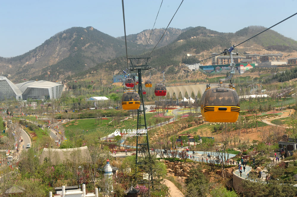 青岛世园索道有限公司销售部经理马继鹏介绍,2014青岛世界园艺博览会首次在山地举办,在中国承办的世界级大型博览会中首次采用观光索道,开创了空中游览世园胜景的先河。索道全长2010米,高30米,进口8人轿箱。为了让游客全方位俯瞰世园内景色,首次采用了170度转弯的角度,在以后的184天世园会开园期间,承担运载世园会游客的任务。