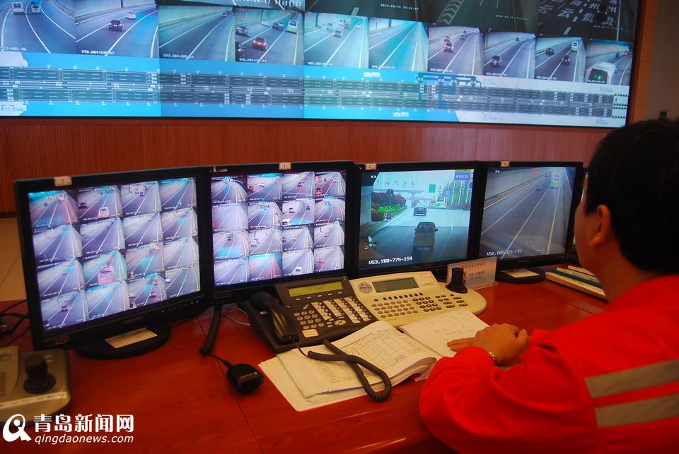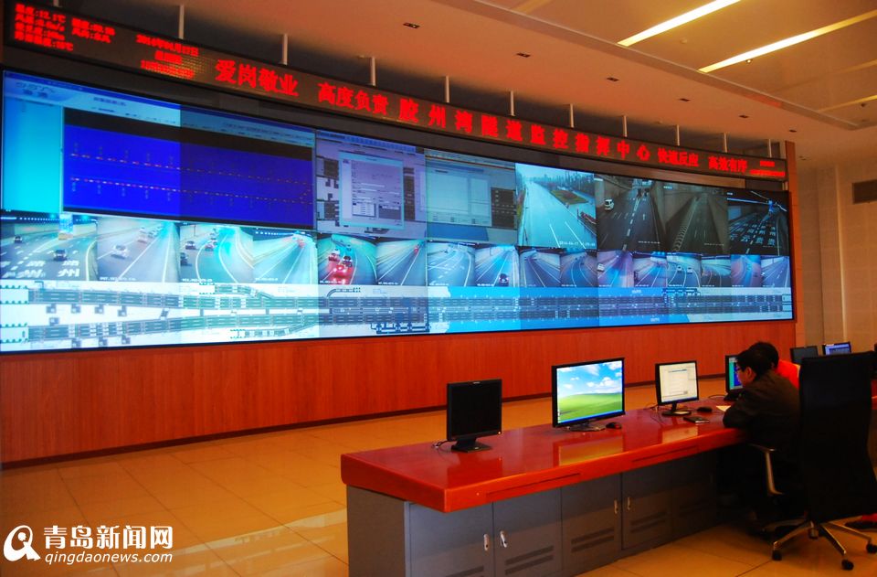 青岛新闻网4月18日讯 胶州湾隧道试运营已满2年,隧道内的交通安全也备受乘客关注。昨天,记者探访神秘的胶州湾监控指挥中心看到,由16块LED屏幕组成的监控视频24小时不间断、无死角的对隧道内的交通违法现场进行实时监控抓拍,保证隧道安全。