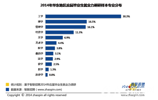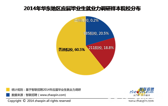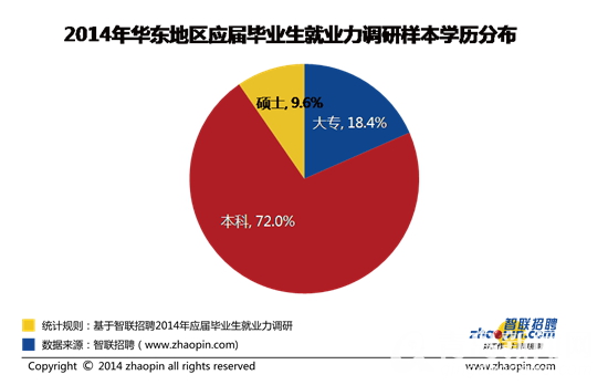 根据调研设计思路,本次问卷调研的对象为华东地区2014年应届高校毕业生,包括大专、本科、硕士、博士应届毕业生,覆盖各地各级高校的各专业学生。最终回收有效样本12906个。本次问卷调研的定量数据收集采用在线问卷调研的方式。通过随机抽样邀请华东地区各地高校应届毕业生参与问卷调查,经过逻辑查错形成最终数据库。