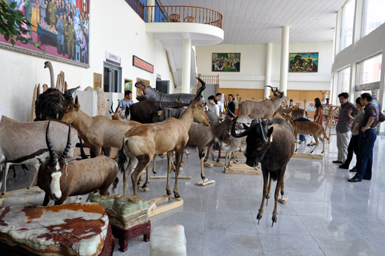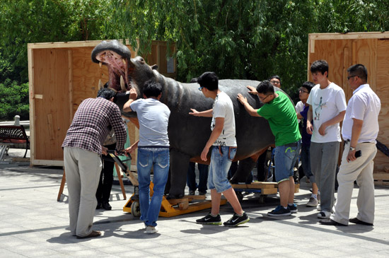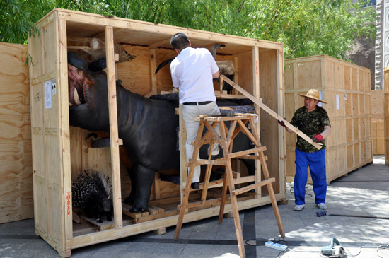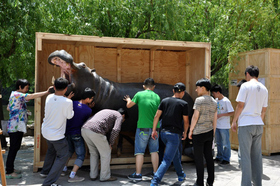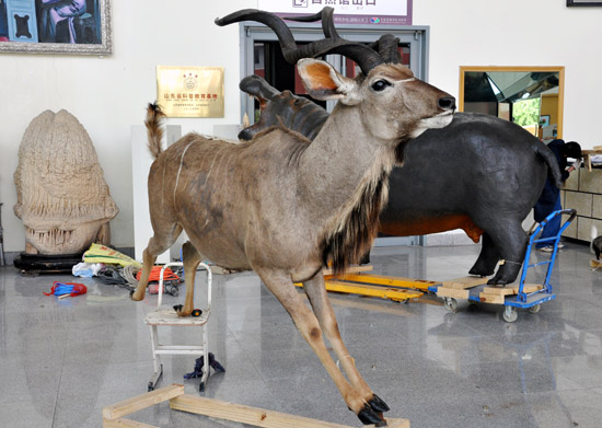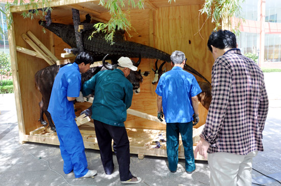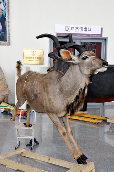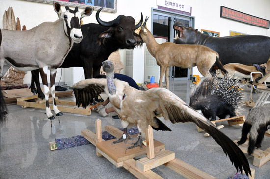 本网讯 2014年5月27日,青岛滨海学院世界动物标本艺术馆内外一片忙碌,造型各异、精彩纷呈的新进51件南非动物标本正在拆箱安装,“六一”儿童节前将布局完毕,艺术馆也将以崭新姿态亮相。