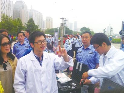 展台前,一台食品药品快速检测系统吸引了现场市民的关注,通过该系统能够迅速检测出食品药品中是否含有微痕量有害化学物及杂质。现场工作人员详细演示了从取样到检测的过程,很快得出疑似添加罗丹明B的结论,随后将到实验室进行进一步检测取证。