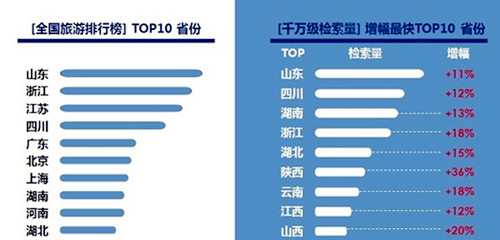 全国最受关注的省份TOP10和千万级检索量中增长最快的省份TOP10:
