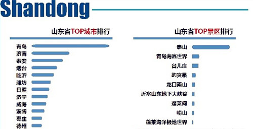 以排行首位且增长最快的山东省为例,我们来看看省内的城市排行和景区排行: