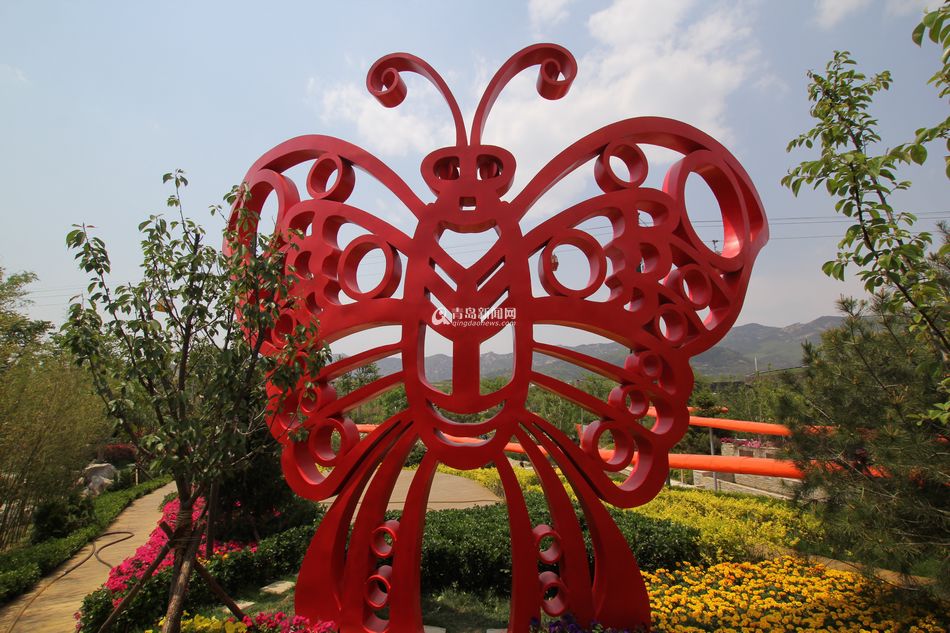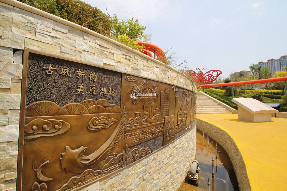 青岛新闻网7月3日讯 潍坊园位于中华园中部,展园总体景观设计充分运用“风筝”这一传统文化,以“鸢飞花舞,美丽潍坊”为设计主题,巧接“蝴蝶风筝”的曼妙外形为总体设计构思,将蝴蝶风筝的外形构架作为园区的整体景观结构,以两条蝴蝶触须抽象而成的动感简洁的曲线构筑贯穿场地,使整个潍坊园就像一只蓄势待发的巨型风筝。