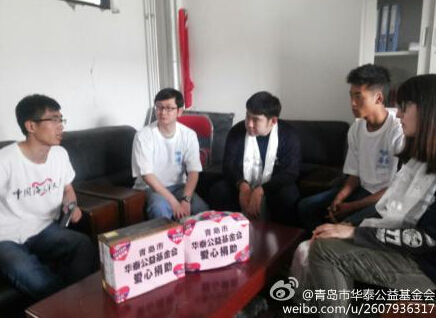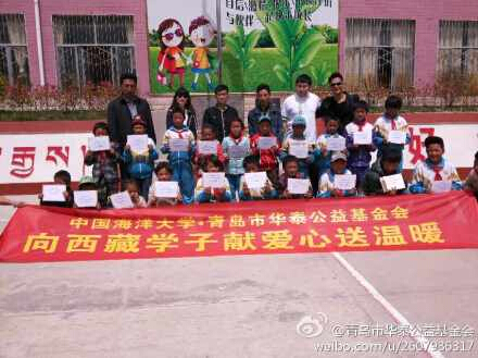2014年6月16日,青岛市华泰公益基金会一行三人,在西藏林芝飞机场接受中国海洋大学研究生西藏支教团领队陈宁同学递来的哈达起,便开始了在西藏公益行动。
