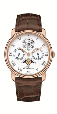 顶级制表工艺是Blancpain宝珀始终坚守的传统。Blancpain宝珀Le Brassus顶级制表工坊的屋檐下,汇聚着业内最完整的工艺团队(金雕、珐琅、大马士革镶金、宝石镶嵌),这使宝珀成为少数可以独立完成以上手工艺的顶级品牌。在Blancpain宝珀Villeret月相显示万年历腕表上,便运用了品牌早已游刃有余的大明火珐琅工艺。它的白色表盘制作时需要在极端高温的窑炉中经过三次焙烧加固:首先,对整个表盘大明火珐琅烧制;然后,叠加烧制下陷式月份及万年历小表盘;最后,小时刻度为第三次烧制。表盘上蓝色珐琅的手绘小时刻度精致鲜明,星期、日期和月份小表盘匀整有致,搭配蓝钢小指针,一目了然;月相显示盘亦大而醒目。这些精美巧妙的设计均极大地增强了表盘的可读性,赋予佩戴者最佳的视觉享受。