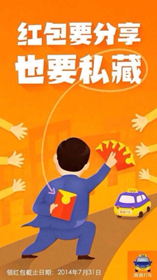 7月16日,滴滴打车对外宣布,继“分享更有爱”红包计划、“全民嘉年华 红包世界杯”之后,为迎合用户“夏日打车旺季”,今天正式启动第三季“要分享,也要私藏”用户红包活动。除与前两轮红包分享规则部分相同之外,此轮红包活动的最大亮点是融入微创新思维,用户只要通过微信支付车费就可获得双重红包,即私藏红包+分享红包,可谓是“双响炮”。