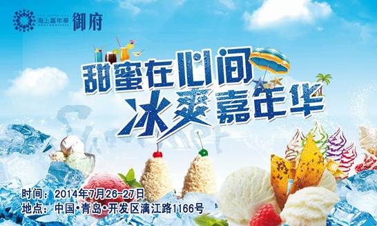 唐岛湾海上嘉年华7月26日—27日冰激凌DIY,用一份简单的快乐,一份精致的冰激凌,一起畅想幸福而又美好的生活。更有瞰海新品耀世加推,恭迎品鉴。