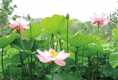 别看这一大池的荷花荷叶繁茂密集,其实当初种下去的只有几颗古莲子。李刚告诉记者,千年古莲子比较稀少珍贵,所以只种了几颗在这片池中,但是莲子长出藕来,藕又能继续繁生,数不清的荷叶荷花就是从这许许多多的藕中长出来的。