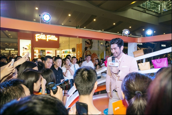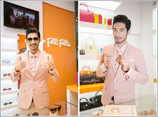 高以翔在Folli Follie青岛百丽广场店铺内试戴Folli Follie产品