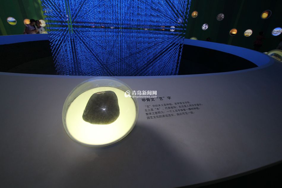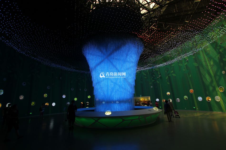 青岛新闻网8月13日讯 源醒展区,位于青岛世园会园艺文化中心,在这里,游客可以了解园艺的起源、解读园艺文化、了解园艺植物的萌动、园艺文化的萌芽等内容。步入源醒展区,一棵8米的“精灵之树”十分醒目,这棵树的树干由1240条灯珠组成,每条有70颗灯珠,每颗灯珠1.5伏电压,树干的中央LED阵列可实现立体成像,结合现场音乐的节奏舞动变换,展现种子萌发的过程。大树周围环形圆台,设实物展柜,展品包括深海种子、太空种子、蛟龙号潜艇、天宫一号太空飞船、园艺文化中心建筑等模型。