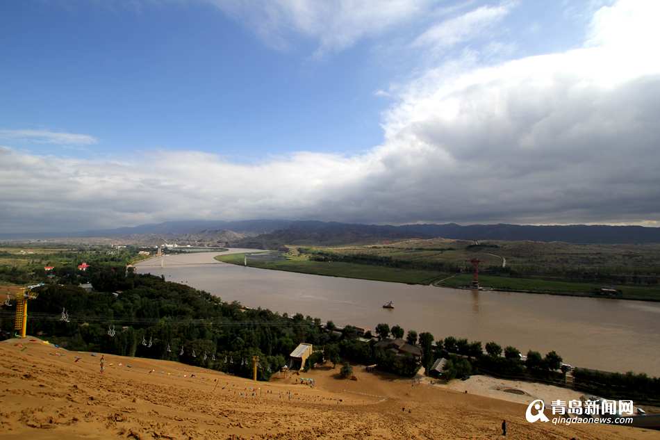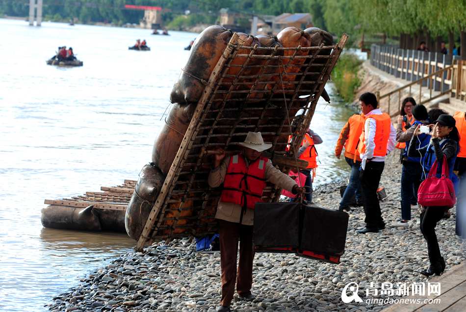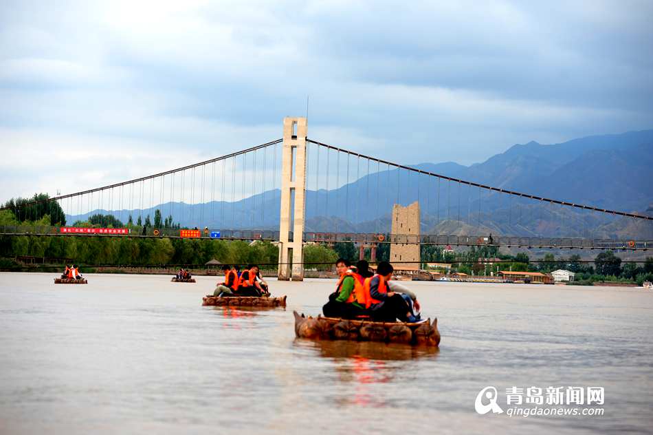 青岛新闻网9月12日讯 昨天,第十届全国网络媒体宁夏行”采访团走进沙坡头。沙坡头特色之一是乘古老的渡河工具羊皮筏,在滔滔黄河之中漂流。