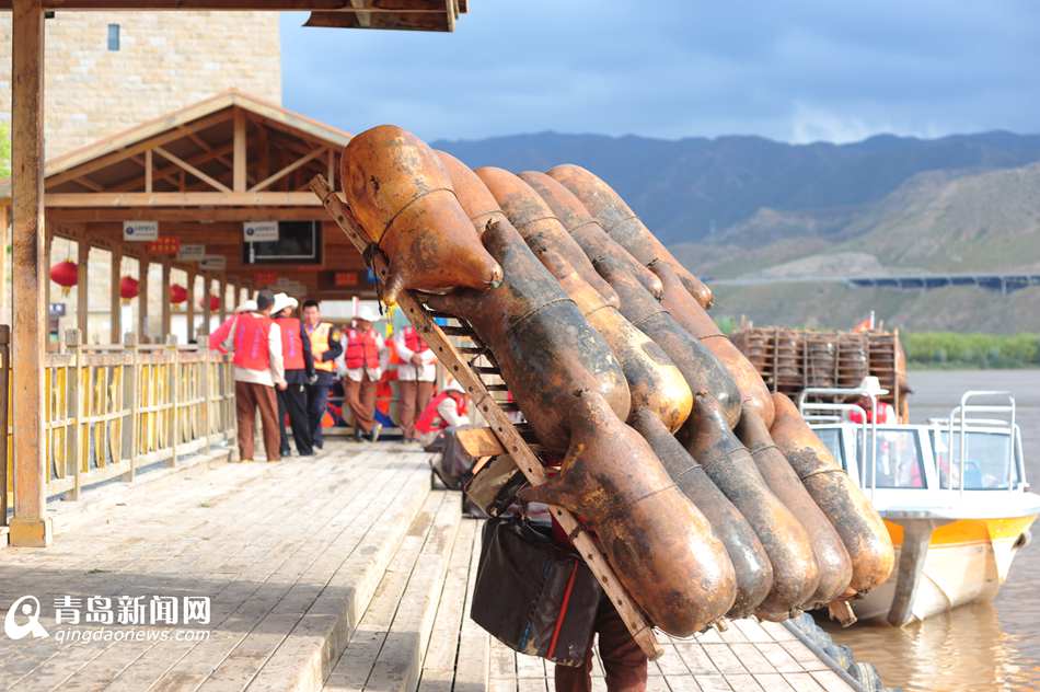 采访团一行还切身体验了黄河上最古老的运输工具—羊皮筏子,在黄河上随波逐流,尽领风骚。只不过,那种波涛汹涌、浪遏飞舟的感觉没有了。取而代之的是风平浪静、湖中荡舟的味道。