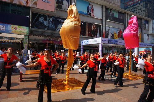 9月20日上午10点左右,台东步行街还笼罩在周末的慵懒中,突然一群肩扛大米的大妈从四面八方涌来,快速闪入人们的视线,路人们纷纷猜测可能是哪个超市搞特价大妈们来扫货吧,只是吃力搬运的样子让人实在不忍心,很多身强力壮的年轻人想上前帮忙,可还未来得及接近,神奇的一幕发生了,大妈们就像科幻片中所演的那样,突然撕掉外套瞬间变身超人,她们的力量也随之暴涨,刚才还扛不动的大米,现在已轻如掌中玩物。大家还处在震惊中时,大妈们终于亮出了底牌 “何必如此辛苦,不如利群购物”!大家这才恍然大悟,原来大妈们是在为近期上线的利群网上商城“线上超市”做代言呢!
