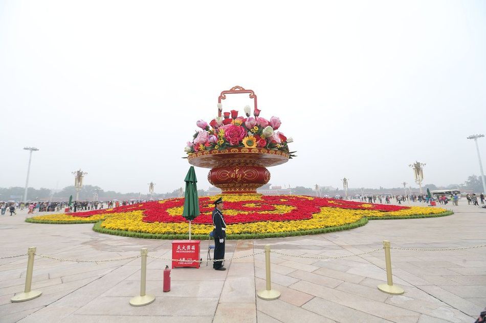 国庆大花篮亮相天安门广场