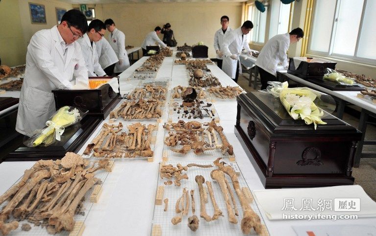 韩国为437具中国志愿军烈士遗骸举行入棺仪式
