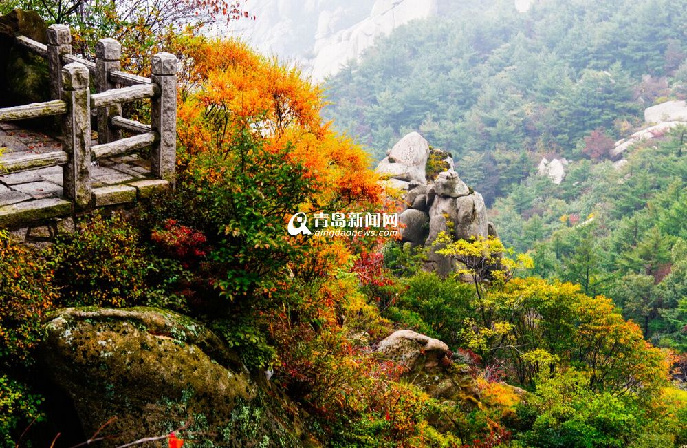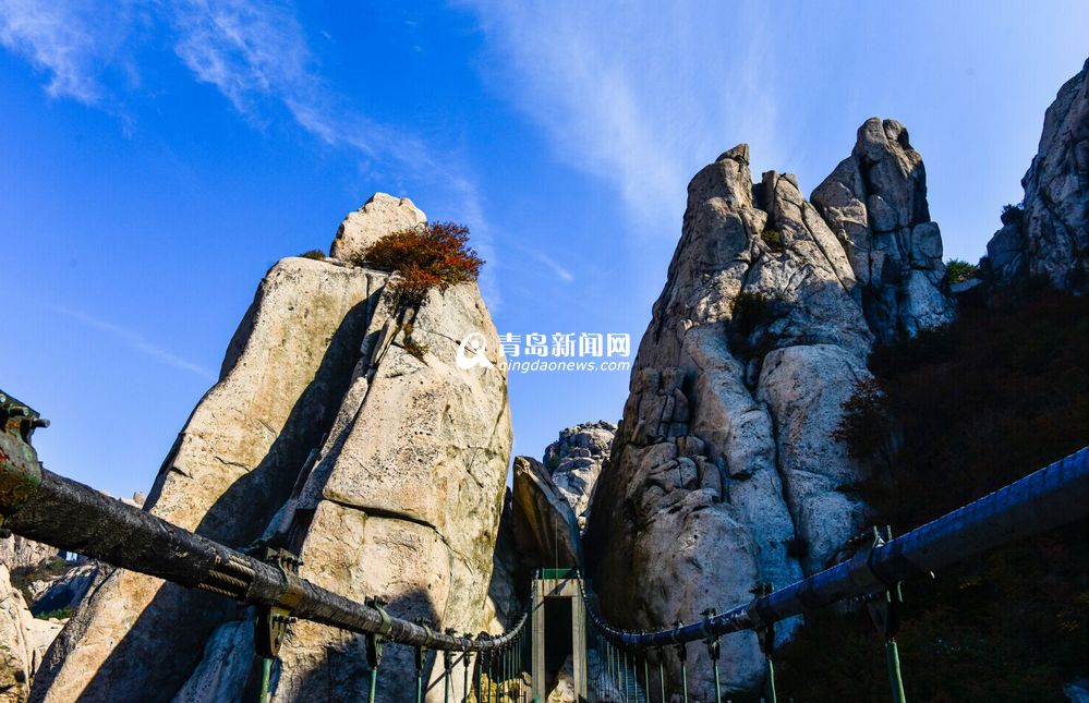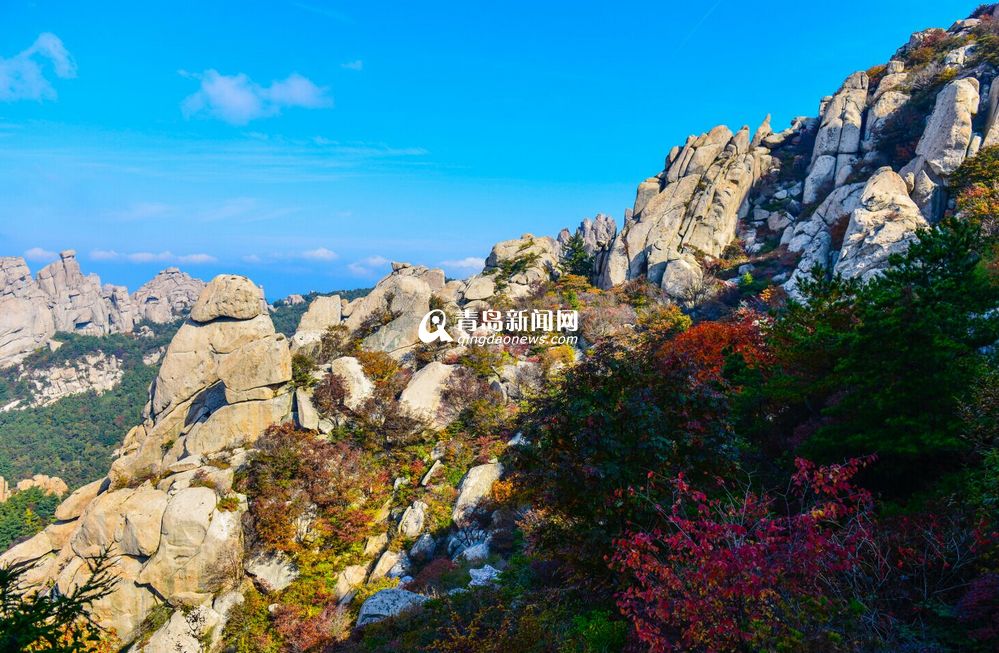 青岛新闻网10月15日讯 岛城连日来西北风呼啸,6级大风带来气温骤降,几乎一夜之间已然秋意满满。崂山南线,巨峰零星植被开始披上或黄或红的盛装,多种色彩将山谷勾勒得极为绚丽。强劲的风力还将天空中的阴霾吹散,站在巨峰之巅,游客们纷纷感叹,原来这就是“碧空如洗”。