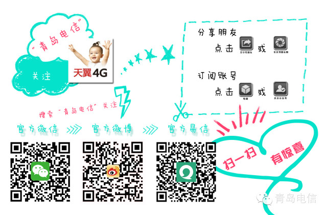 扫描底部二维码,关注“青岛电信”微信或易信公众号。点击“4G体验”菜单,即可参与4G体验英雄招募活动。