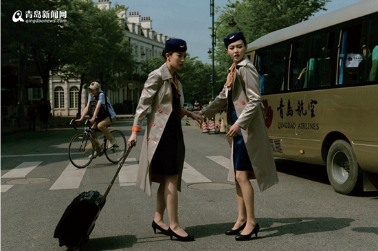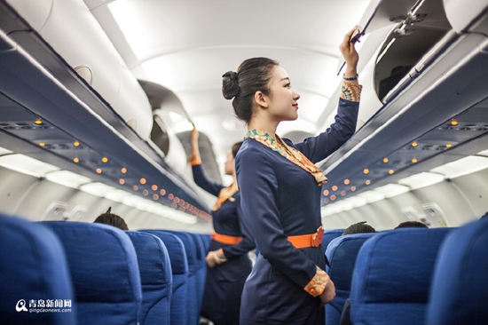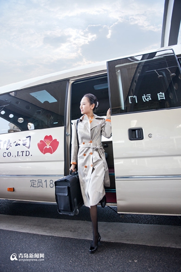 据悉,青岛航空乘务员的制服分为两套修身连衣裙装,一套是影片中刘亦菲所穿的那款深蓝色的裙装,另一套为浅灰色,皆可与浅灰色风衣相配。两套简约的裙装均在领口处搭配色彩鲜艳的丝巾,袖口设计与领口丝巾色彩、纹饰相呼应,一方橘色带有青航耐冬花标识的配饰腰带点缀腰间,整体风格历练不失活泼,精致不失优雅。(记者 孙璐璐)