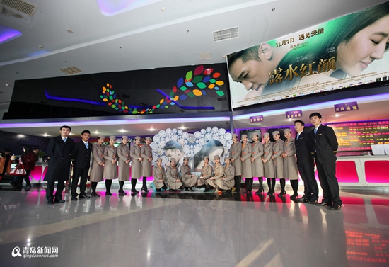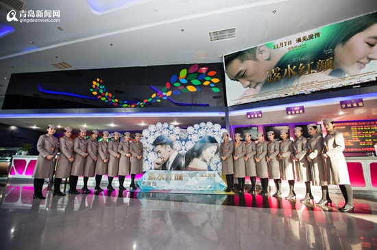 11月16日,原版“最正空姐”——青岛航空空姐来到电影院观影《露水红颜》PK“最美空姐”。只见她们头戴贝雷帽,风衣飘逸大气,制服裙装典雅大方,女神范儿十足。同场观众可谓“艳福不浅”,荧幕上的刘亦菲楚楚美丽,上演着优雅的制服诱惑,身边的原版空姐落落大方,身姿绰约,曼妙动人。