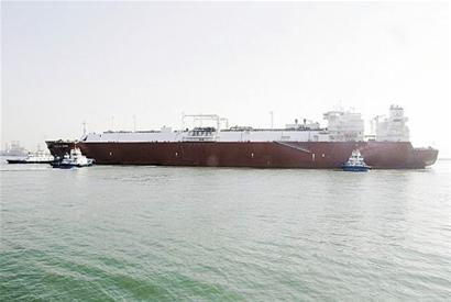 昨日,在青岛董家口港区,满载液化天然气(LNG)的“科罗尼斯”轮正向码头罐内输气。该船LNG申报数量为14.5万立方米,货值近3亿元,是山东口岸首次接卸进口液化天然气(LNG),标志着中石化山东LNG项目自2010年开工建设以来已经进入重载试运行阶段。