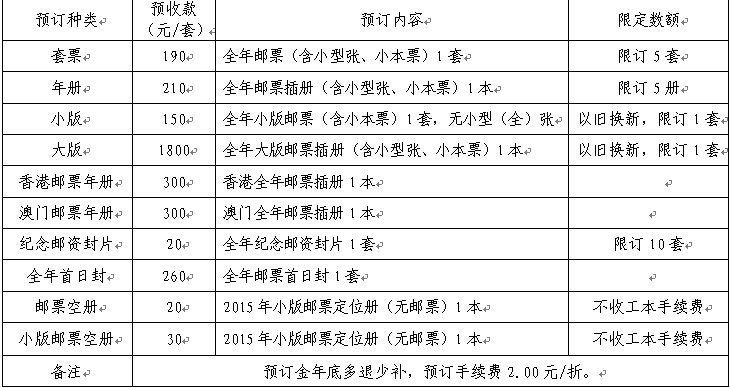 2015年新邮开始预订,数量有限,订完即止
