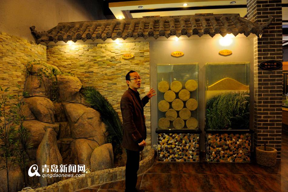 据博物馆负责人冷先生介绍:“即墨老酒酿造技艺的特别之处是采用了‘煪糜法’,也就是将泡透的大黄米放于锅中,在加热过程中不断搅拌添浆,使其焦而不糊,煪而成糜,加曲发酵取酒。”