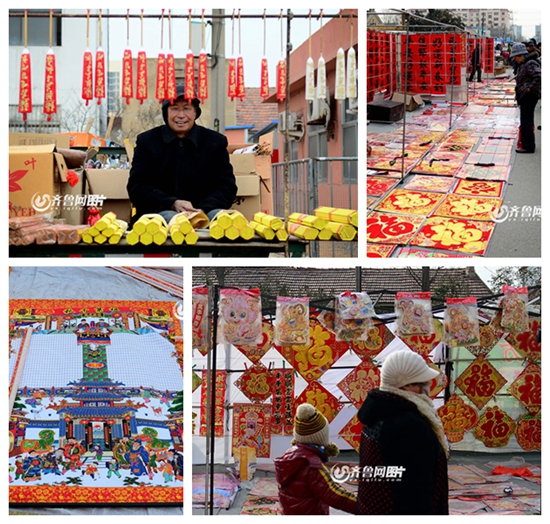 对联、福字、蜡烛、黄香、贡品等传统的春节物品在辛安大集上也随处可见。