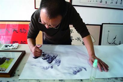 “为达到最好的效果,我不断试验纸张,宣纸、腹背纸、绘图纸……换了十多种,终于找到了效果最好的纸——哑粉纸。”郭占霖告诉记者,用这种独特的方式作画,对纸张克数和厚度也有严格限定。