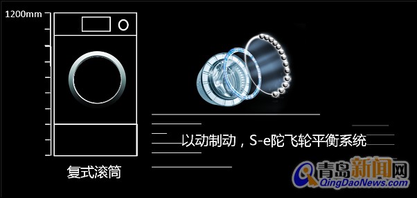 长久以来,传统欧式滚筒洗衣机以配重块的方式,解决噪音难题。其具体原理是在机身内部放置两块笨重水泥块或铁块,称为“配重块”,以其本身的重力作用来纠正机身运转时产生的偏心,平衡滚筒旋转时产生的巨大离心力,从而减振降噪。这种“以静制动”的降噪方式,使传统欧式滚筒洗衣机较波轮洗衣机噪音程度有很大改善,但仍未能将噪音降低至人耳60-70的舒适范围之内。