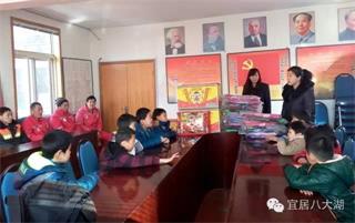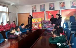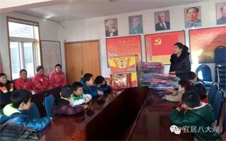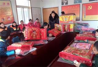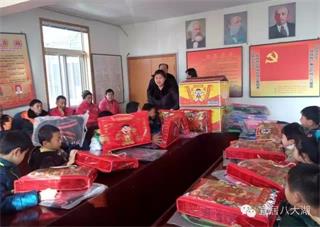 1月28日上午九点,八大湖街道为市南区环卫清洁总公司的71个贫困家庭的中小学生送去书包、零食等物资,帮助环卫工人为子女准备新春礼物,让他们度过一个快乐的春节。